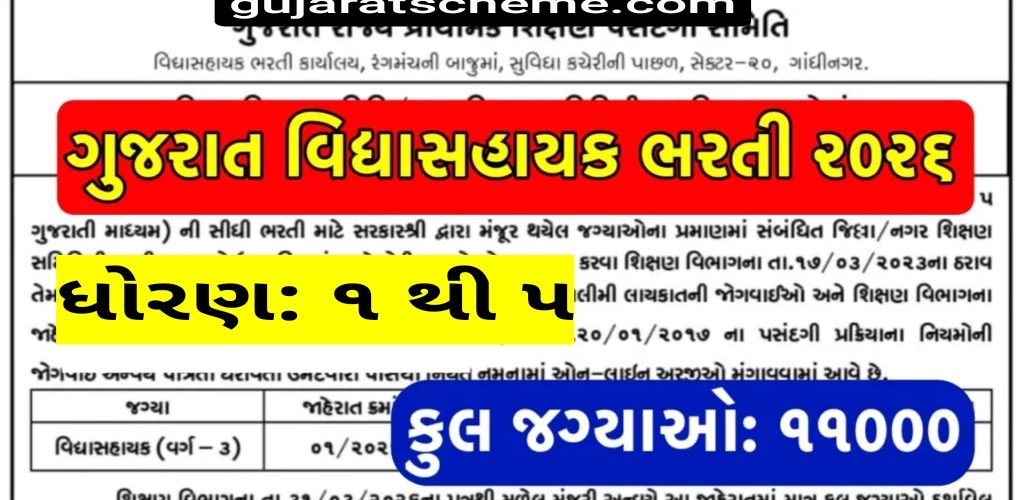 - ગુજરાત વિદ્યાસહાયક ભરતી 2026 – 11000 પોસ્ટ માટે મોટો મોકો
